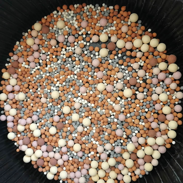 托瑪琳多功能陶粒(電氣石陶粒)存在著正極和負(fù)極,它一經(jīng)接觸水,瞬間就能在水中釋放電流,這種電流是最適合人體的0.06MA的電流。當(dāng)水與上述微弱電流接觸時(shí),周圍的水分子中的氫離子和氫氧離子就分離。一方面氫離子與電子結(jié)合成氫氣,氫氧離子與周圍的水分子結(jié)合成界面活性物質(zhì)和能產(chǎn)生300倍以上的負(fù)離子。通過超聲波測(cè)出此時(shí)氫氣為1.32PPM,這說明水的還原性電位很好,在這種環(huán)境下水將變成有堿離子水(PH值7.4左右,就同人體的體液是一樣的)。同時(shí),由于水成弱堿性,藻類將不會(huì)再繁殖下去。